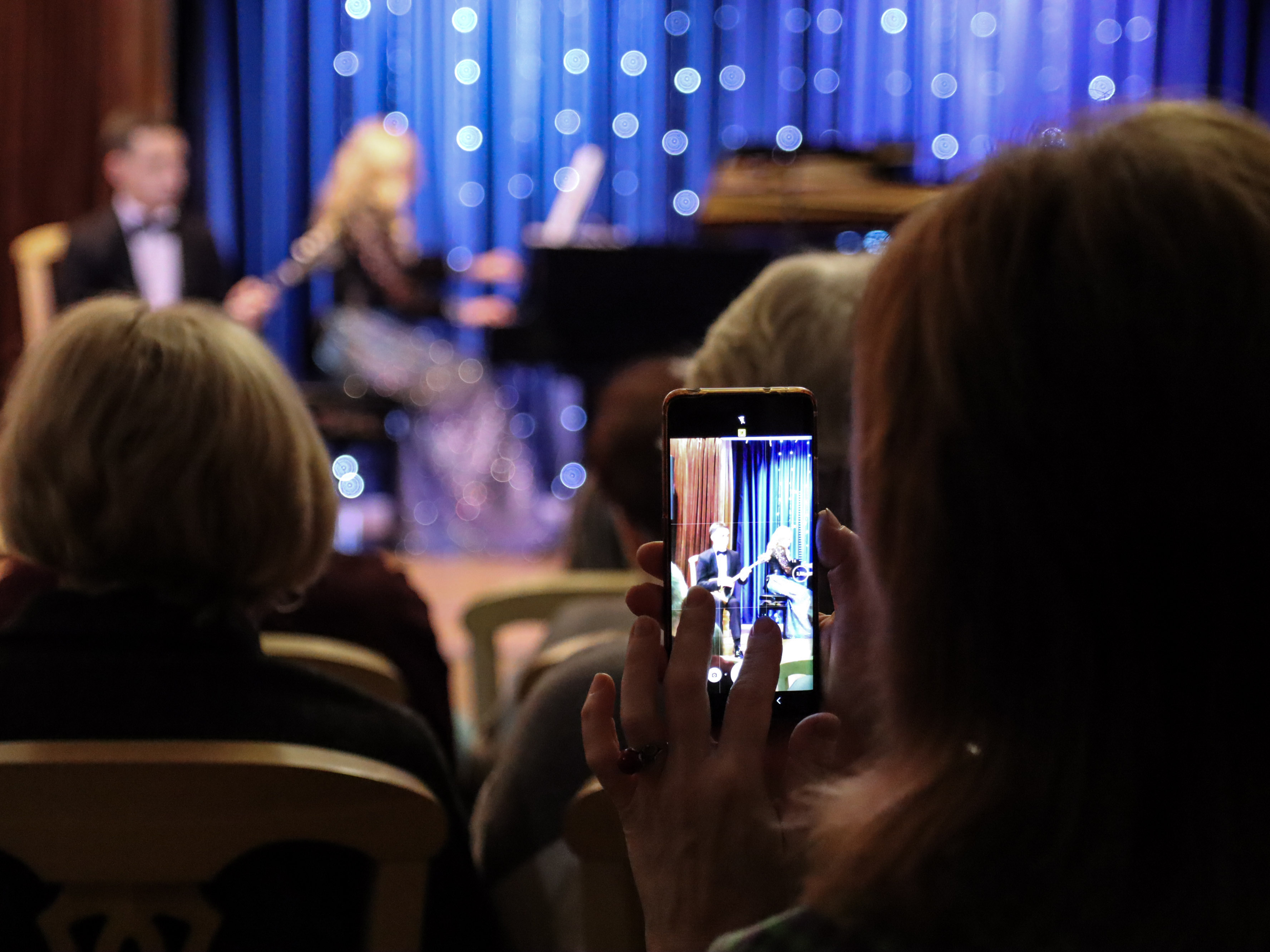 В зале звучали Венгерская рапсодия Листа, вальсы и польки Штрауса, Испанский танец де Фальи, вариации на «Красный сарафан» Александра Шалова, «Итальянская полька» Рахманинова и другие произведения.