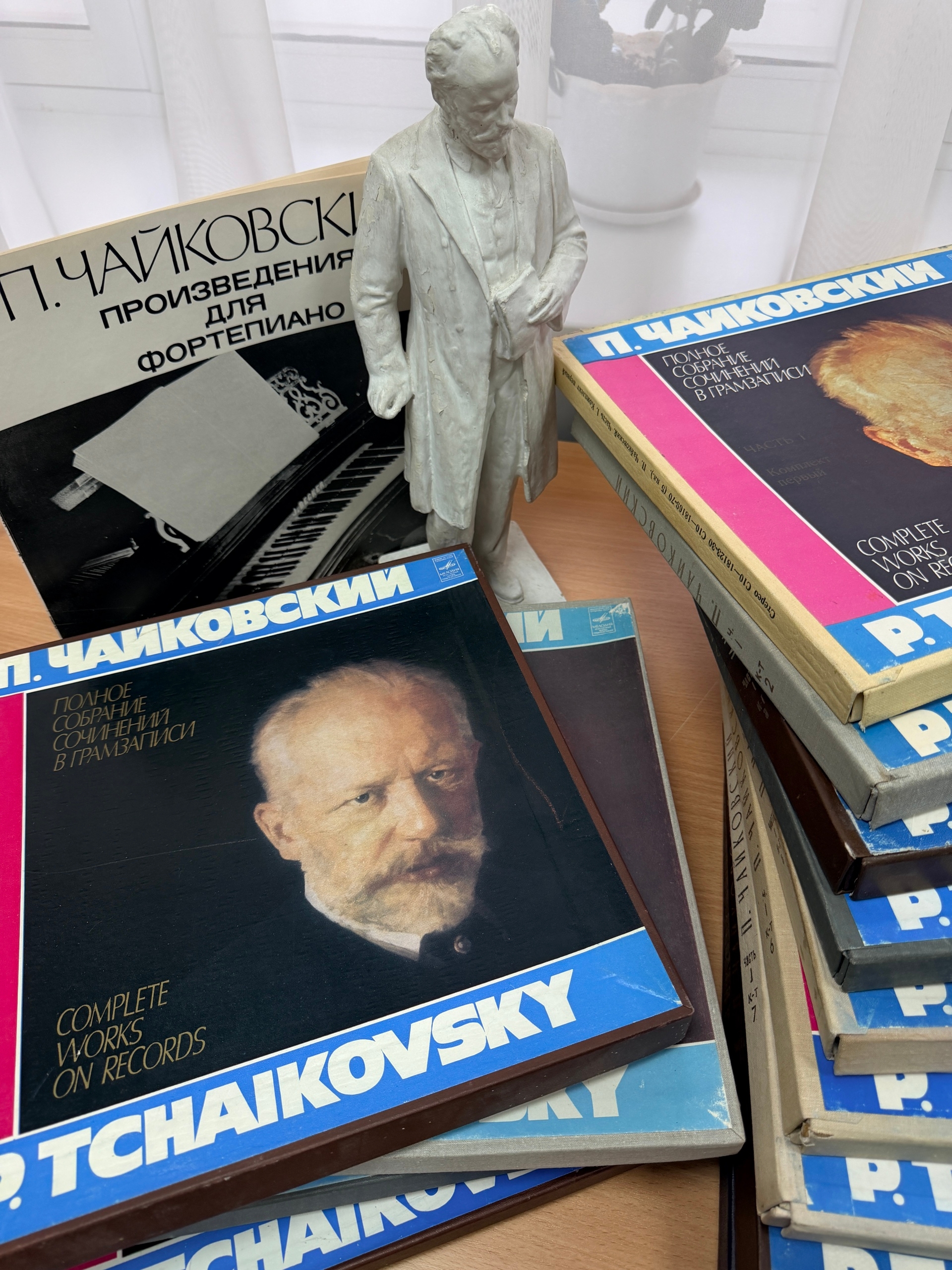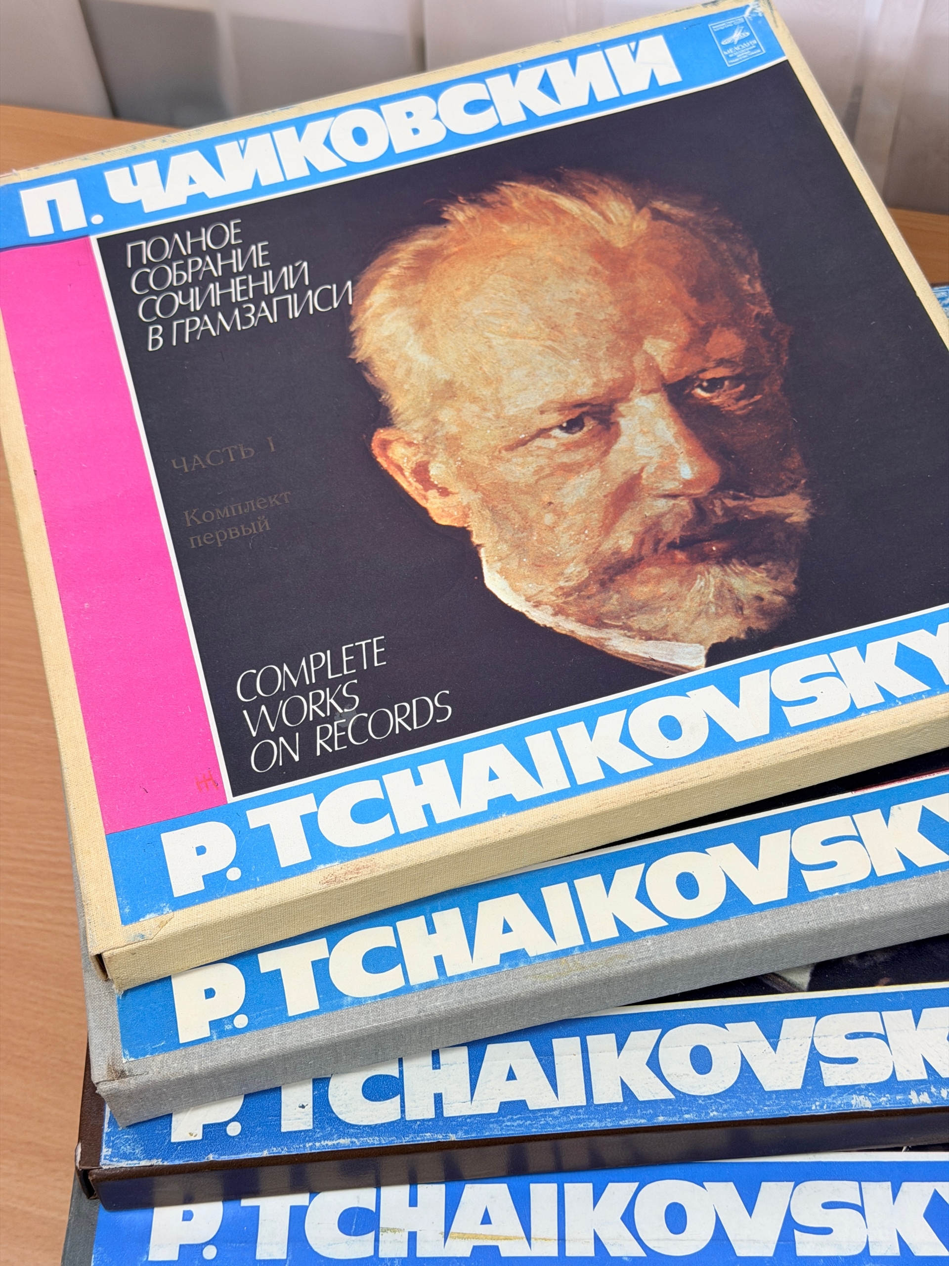 Первый их них - ценная и редкая коллекция - полное собрание сочинений Чайковского на грампластинках.