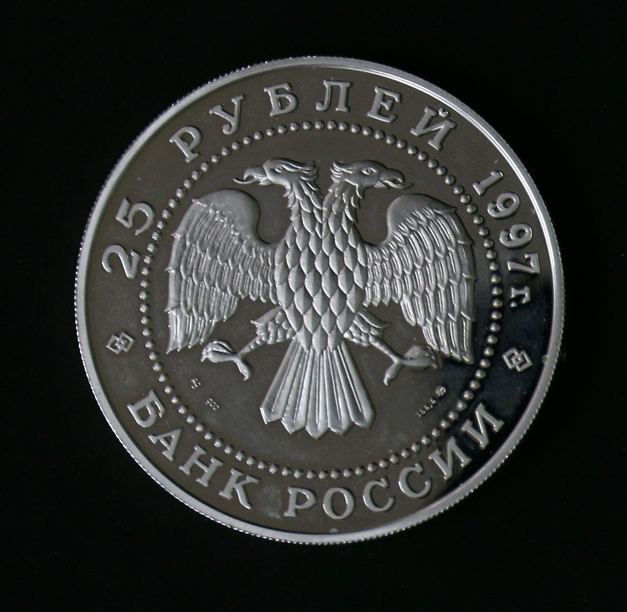 Серия коллекционных монет «Русский балет» выпускалась с 1993 по 1997 год включительно, а также выходила в 1999 году. В рамках серии были выпущены юбилейные монеты, посвященные таким известным балетам, как «Спящая красавица», «Щелкунчик», «Лебединое озеро». Памятная серебряная монета номиналом 25 рублей, вышедшая 30 июля 1997 года в рамках серии «Русский балет», посвящена всемирно известному балету «Лебединое озеро».