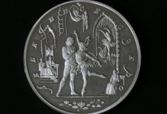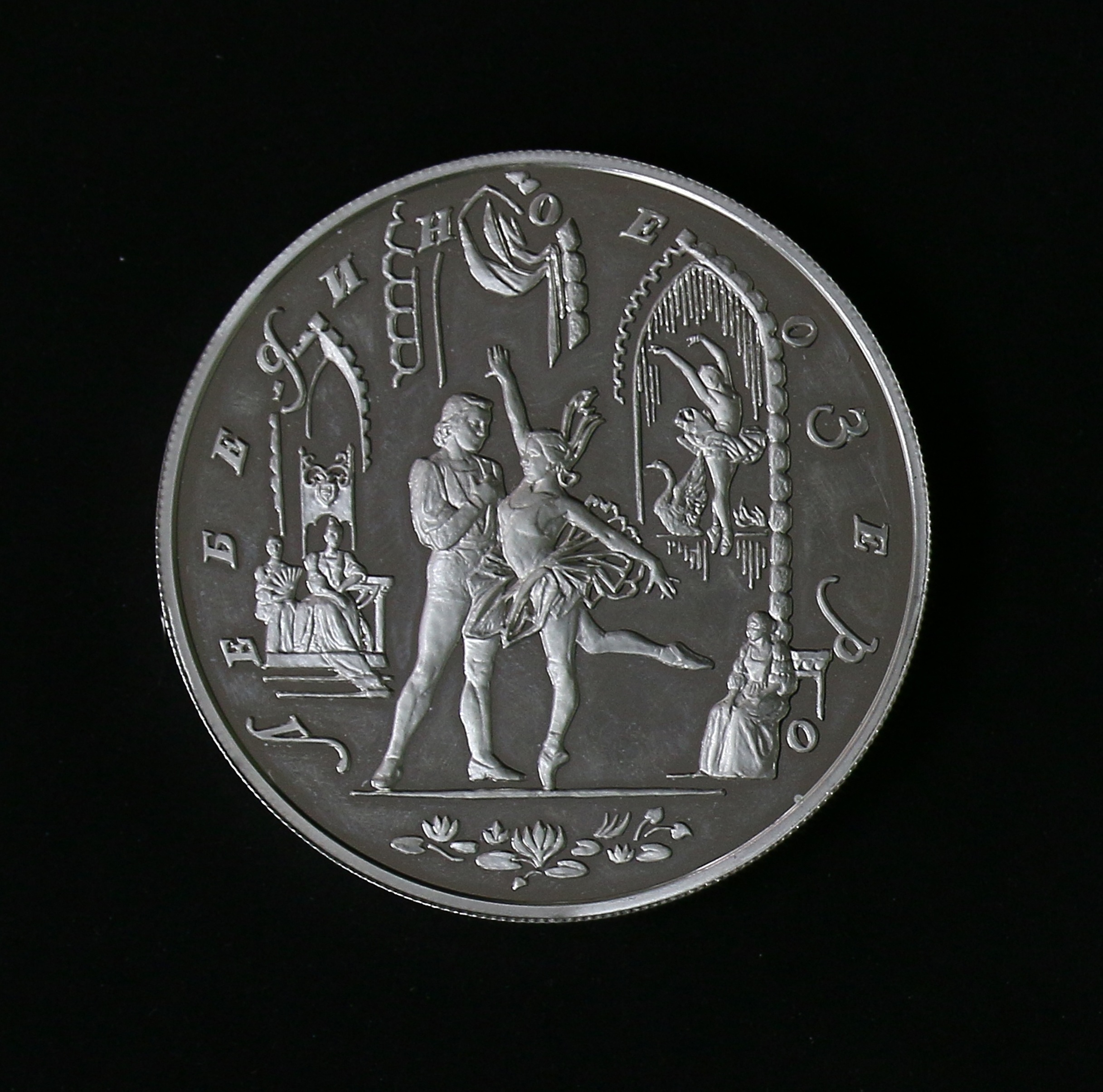 В нижней части — обозначение металла, проба сплава, содержание драгоценного металла в чистоте и товарный знак монетного двора. Балетный спектакль «Лебединое озеро» (музыка П.И. Чайковского) в постановке Ю. Ройзингера впервые был показан на сцене Большого театра в Москве 20 февраля 1877 г.