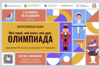 С 20 ноября по 20 декабря 2025 года в рамках культурно-образовательного проекта «Культура для школьников» пройдет всероссийская акция «Мой гений, мой ангел, мой друг. Олимпиада», посвященная 185-летию со дня рождения Петра Ильича Чайковского.