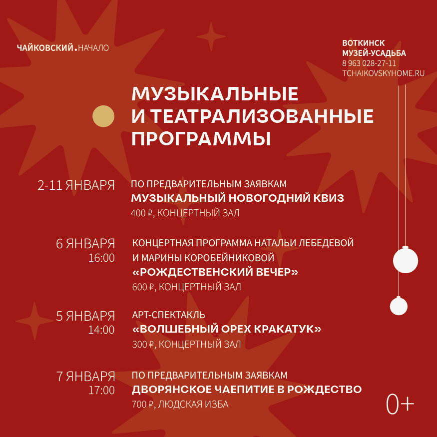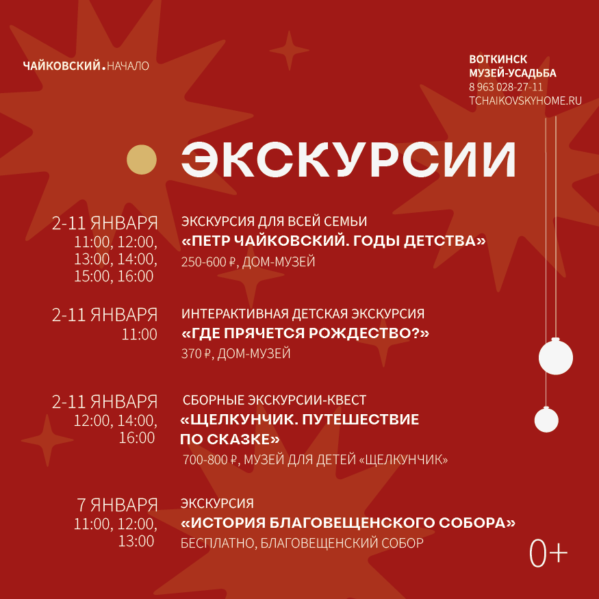 С 2 по 11 января вас ждут тематические экскурсии, мастер-классы, концерты, семейные программы и специальные события для детей.