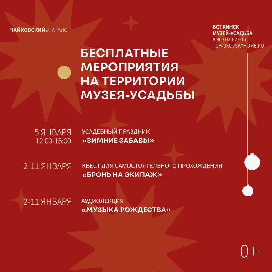 • 5 января, 12:00-15:00 – усадебный праздник «Зимние забавы» – бесплатно.