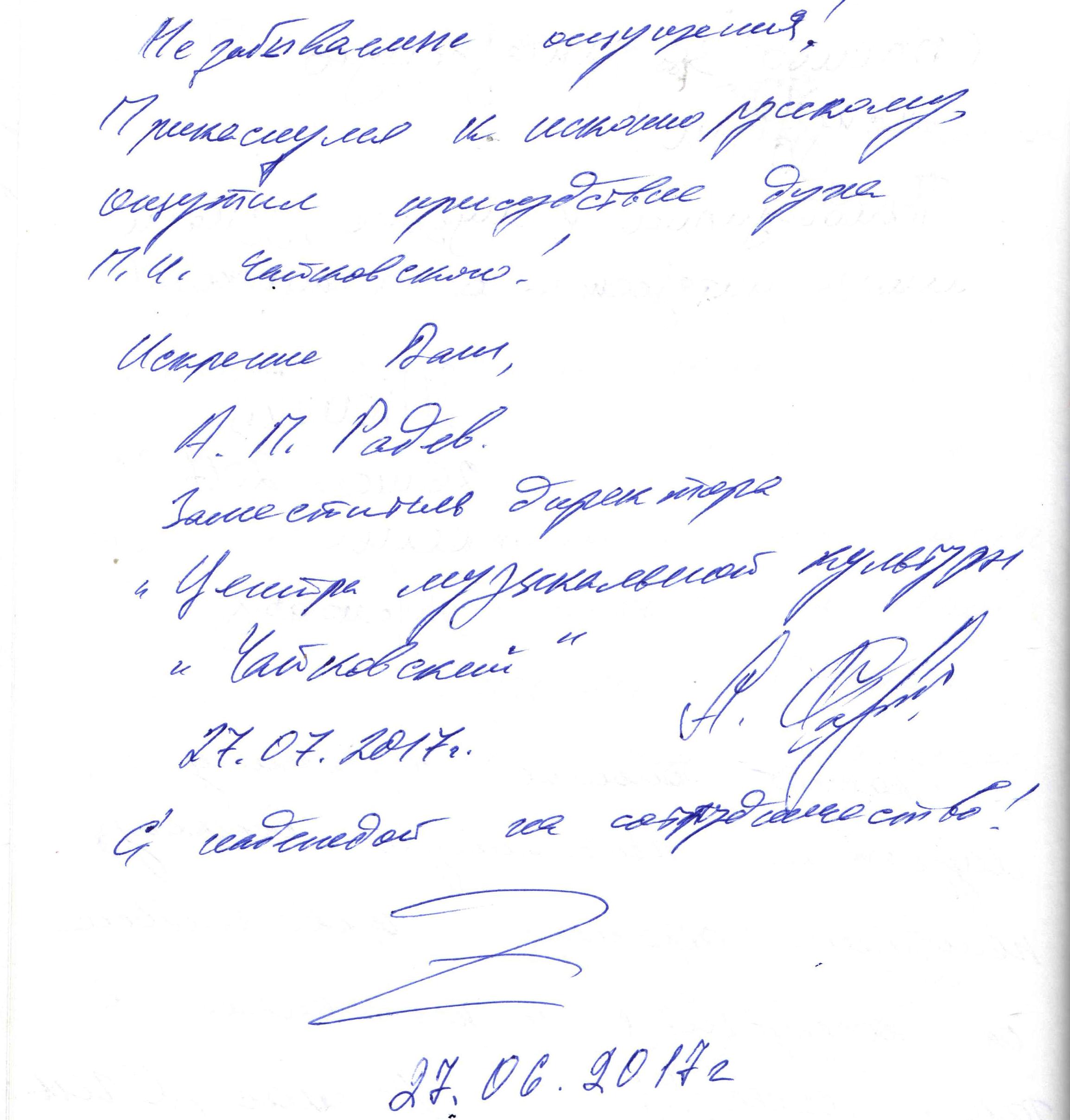 Искренне Ваш, А. П. Радев - заместитель директора "Центр музыкальной культуры "Чайковский"